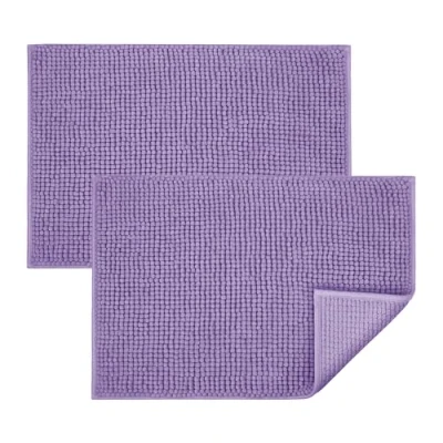 BedLooms Lilac Bath Mat Non Slip Anti Mould, 2 Pack 50x80cm Chenille Bathroom Mat, Ultra Soft Machine Washable Mats Water Absorbent Shower