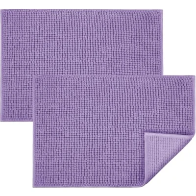 BedLooms Lilac Bath Mat Non Slip Anti Mould, 2 Pack 60x90cm Chenille Bathroom Mat, Ultra Soft Machine Washable Mats Water Absorbent Shower
