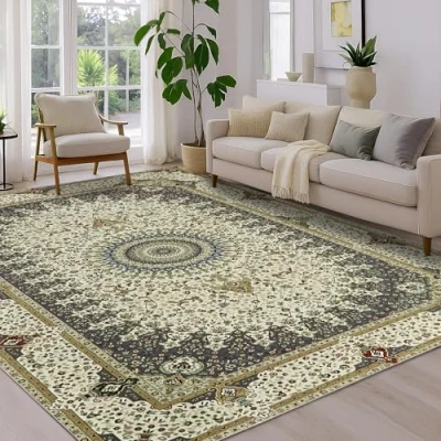EASY TO CLEAN: Effortlessly our traditional design area rug are machine washable, or even cleaned with a robotic vacuum. Keep this easily washable rug looking fresh daily. Any initial creases in this unique and modern vintage design rug will naturally smooth out within a week when placed on the floor and walked upon. FOLDING PACKAGING: This rugs with moderate thickness not only decor your home, soft on touch but also can be easily placed behind doors and under furniture. Beyond the stylish design rugs our rugs are eco-friendly. It's foldable for convenient storage built to withstand daily life. NON-SLIP BACKING: Our Rugs feature high-quality non-slip backing, whether it's an area rug. This backing effectively secures the rug in place, avoiding any shifting or slipping and ensuring a safe environment for daily activities. It serves as a reliable foundation for frequently used areas. LONG-LASTING RUG: Our low-pile area rug is constructed with long-lasting Polyester Microfibers and features dense machine-woven technology to withstand heavy foot traffic and potential pet scratching. The solid edge of this Cashmere rug adds to its resilience, ensuring lasting comfort and quality for any high traffic Zone. SOFT MODERN AREA RUG: This rug with a unique silk-like luster and a dense texture is made of low-pile soft material which feels great underfoot. With its low pile, the Rugs are short and tightly packed together, creating a smooth and even surface. that's comfortable to step on barefoot., Manufacturer: BedLooms