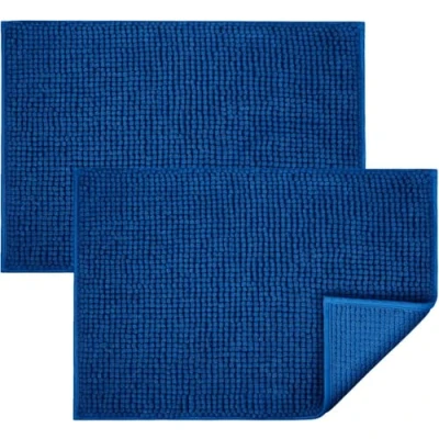 BedLooms Navy Bath Mat Non Slip Anti Mould, 2 Pack 60x90cm Chenille Bathroom Mat, Ultra Soft Machine Washable Mats Water Absorbent Shower