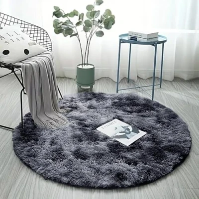 BedLooms Round Rugs Living Room 120x120 CM Tie Dye Dark Grey Area for Bedroom Non Slip Modern Super Soft Plush Carpets Fluffy Shaggy Rug Lounge Shedding Bedside Kids