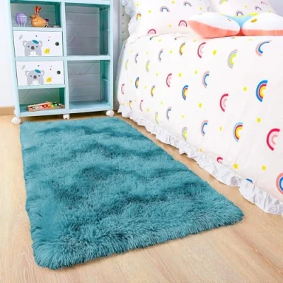 BedLooms Rugs Living Room 60x110 cm Tie Dye Teal Area for Bedroom Anti Slip Modern Super Soft Plush Carpets Fluffy Shaggy Rug Lounge, Dining Non Shedding Bedside Kids