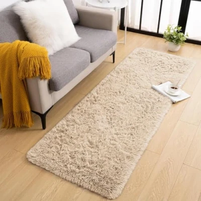 BedLooms Rugs Living Room Beige Area for Bedroom, Hallway Runner 60x220 cm Anti Slip Modern Super Soft Plush Carpets Fluffy Shaggy Rug Lounge Non Shedding Bedside Kids