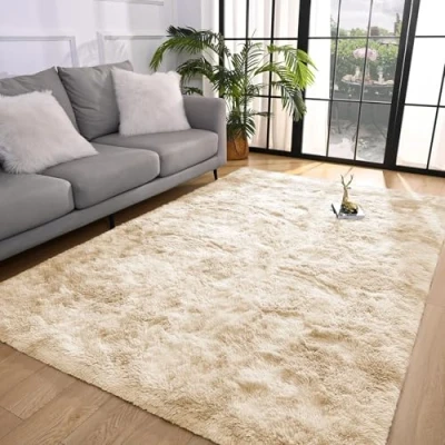 BedLooms Rugs Living Room Large 160x230 cm Tie Dye Cream Area for Bedroom Non Slip Modern Super Soft Plush Carpets Fluffy Shaggy Rug Lounge, Dining Shedding Bedside
