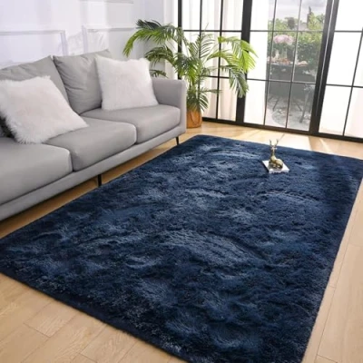 BedLooms Rugs Living Room Navy Area for Bedroom, Hallway Runner 80x150 cm Anti Slip Modern Super Soft Plush Carpets Fluffy Shaggy Rug Lounge Non Shedding Bedside Kids