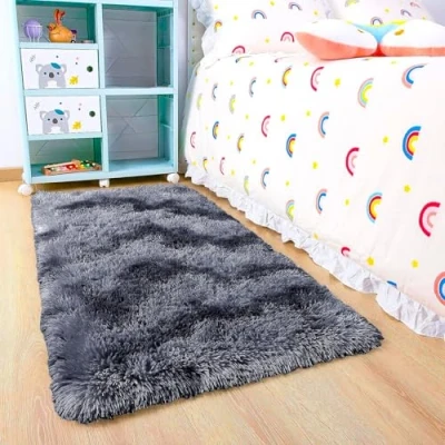 BedLooms Rugs Living Room Small 50x80 CM Tie Dye Dark Grey Area for Bedroom Anti Slip Modern Super Soft Plush Carpets Fluffy Shaggy Rug Lounge Non Shedding Bedside Kids