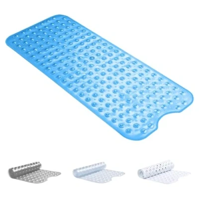 BedLooms Shower Mat Non Slip Anti Mould Blue 100x40 cm Bath for Bathroom & Bathtub with Strong Suction Cups Grip Mats Easy Drain Machine Washable