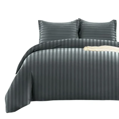 BedLooms Single Duvet Cover Set Reversible Satin Stripes Covers Soft Breathable & Hypoallergenic Bedding with 1 Pillow Case (Stripe Charcoal, 135x200 cm)