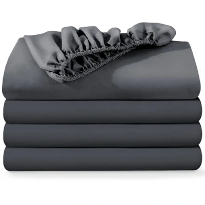 BedLooms Single Fitted Sheets 4 Pack Charcoal (91x190cm) up to 25cm Deep Bed