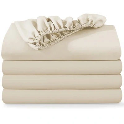 BedLooms Single Fitted Sheets 4 Pack Cream (91x190cm) up to 25cm Deep Bed