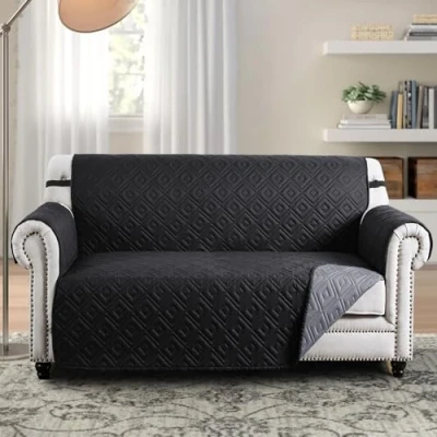 BedLooms Sofa Covers 2 Seater Washable Slipcovers for Living Room Water Resistant Protectors from Pets Reversible Quilted Non Slip Cover with Elastic Straps (Black/Dark Grey)