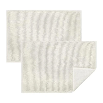 BedLooms White Bath Mat Non Slip Anti Mould, 2 Pack 50x80cm Chenille Bathroom Mat, Ultra Soft Machine Washable Mats Water Absorbent Shower