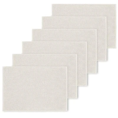BedLooms White Bath Mat Non Slip Anti Mould (6 pack) Machine Washable Mats 40x60cm Chenille Bathroom Super Absorbent Extra Soft Fluffy Shower