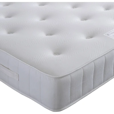 General description A superb and springy mattress featuring a combination of memory foam and traditional padding for enhanced comfort and support. The Memory Maestro Memory Foam Mattress is designed with a sturdy core of open coil springs and a 4cm body contouring memory foam layer, providing excellent support for a restful night's sleep. Technical specifications Height: 25 cm Coil type: 12.5g coil sprung Dimensions: Small Double 120 cm x 190 cm Material: Double Jersey stretch fabric (blend of cotton, wool, and synthetic materials) Other information Features air vents and horizontal handles for easy mobility Rod edge support for added durability Hand tufted finish for extra charm