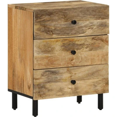 VidaXLThis bedside cabinet with an elegant design makes a timeless addition to your interior decor. Solid mango wood: Solid mango wood is a strong, tropical hardwood that makes sturdy furniture. Its beautiful wood grains make every piece of furniture slightly different from the next. Made of solid mango wood, the cabinet is durable and stable.Ample storage space: The bedside table is designed with 3 drawers to keep things organised and within easy reach.Stable top: The top of the side cabinet is perfect for displaying your decorative items, picture frames and potted plants.Sturdy legs: The iron legs add the bedroom furniture's sturdiness and stability. Warning:To prevent it from tipping over, this product must be used with the provided wall attachment device.