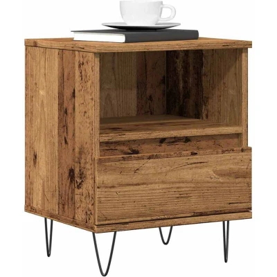 General description This trendy bedside cabinet, featuring a sleek and classic design, is meant to upgrade your interior to the next level. Made of high-quality engineered wood, it offers a smooth surface along with strength, stability, and moisture resistance. The bedside table is easy to clean with a damp cloth. Technical specifications Colour: Old wood Material: Engineered wood, metal Dimensions: 40 x 35 x 50 cm (L x W x H) Assembly required: Yes Usage Ample storage space: The bedside cabinet includes a drawer and a compartment, providing ample space to keep your magazines, books, remote controls, and other small items well organized and within reach. Sturdy top: The sturdy top of the nightstand is ideal for displaying decorative objects, photo frames, and potted plants. Other information Warning: To prevent it from being overturned, this product must be used with the provided wall attachment device.