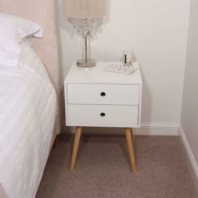 Bedside Cabinet Side Table White Nightstand with 2 Storage Drawers Wooden Legs