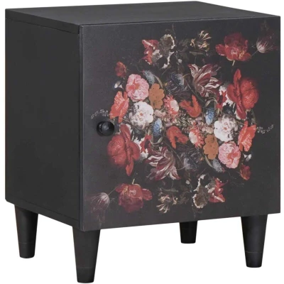 This bedside cabinet offers an exquisite touch to any bedroom with its elegant design and functional structure. Featuring a beautiful floral motif, it adds a touch of sophistication and calm to atmosphere, making it ideal for night-time relaxation. Its compact shape allows it to fit perfectly beside your bed, while the bold black finish provides a striking contrast that enhances any room's decor. Materials: Constructed from solid mango wood, this bedside cabinet ensures long-lasting use with its sturdy build and natural appearance. The choice of materials reflects a dedication to quality, ensuring peace of mind for users. Included Components: At its heart, the cabinet features a single, hinged door crafted from the same solid mango wood. This provides an elegant barrier, allowing users to store personal items away from view, maintaining a tidy and clutter-free space. Distinct Design: The cabinet is adorned with an intricate floral pattern that captures attention. Its artistic design adds a beautiful highlight in any room, transforming your bedroom into a space that blends with luxury and style effortlessly. Functional Uses: With its small footprint of 40 x 33 x 46 cm, this table is perfectly sized for taking on the role of a traditional nightstand, storing books, phones, or a lamp. Its versatility makes it an excellent choice for all corners of the bedroom. Care &Maintenance: To maintain its pristine look, regularly dust with a dry cloth. Avoid using wet materials or harsh chemicals, and ensure the cabinet stays indoors to sustain its elegant finish.