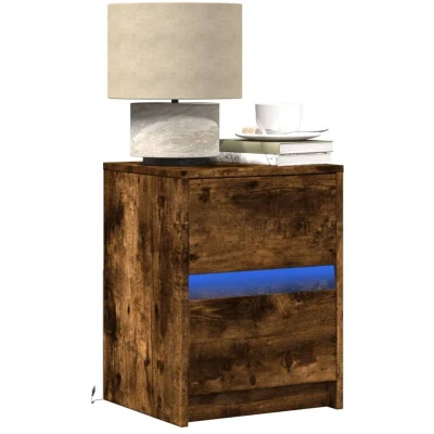 Bedside Cabinet with led Lights Smoked Oak Engineered Wood Vidaxl