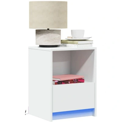 Bedside Cabinet with led Lights White Engineered Wood Vidaxl