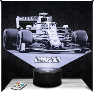 Bedside lamp, Formula 1 N. Latifi F1 Night Light 3D LED Illusion, Christmas, Gift idea for Boys and Girls Birthday Children's or Adult's Bedroom