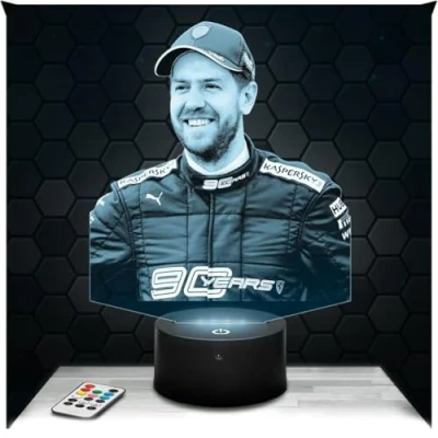 Bedside Lamp, Formula 1 S. Vettel Night Light F1 Driver 3D LED Illusion Christmas Birthday Gift idea for Boys and Girls Child or Adult Bedroom