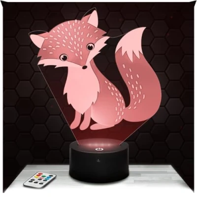 Bedside Lamp, Fox Night Light Animal 3D LED Illusion Christmas, Gift idea Birthday boy and Girl lamp for Child or Adult Bedroom