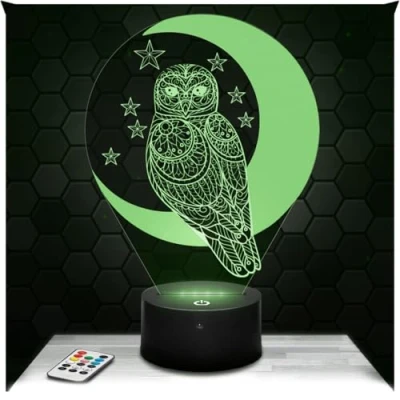 Bedside lamp Owl Mandala Decoration Animal Bird Moon. Gift idea for Men and Women, Object, Adult Night Light, Bedroom Decoration. Original Christmas, Women.