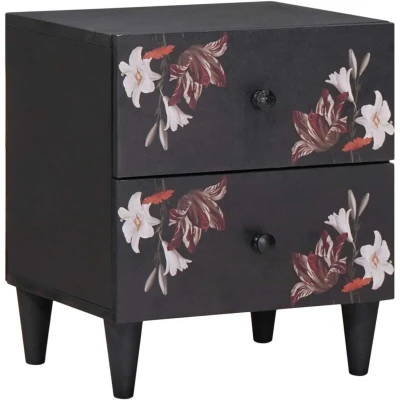 ManoManoThis Modern Bedside Table effortlessly blends simplicity and functionality to fit seamlessly into any bedroom aesthetic. The rectangular shape, adorned with a charming floral pattern, provides a visual allure while serving various functional purposes, such as holding a lamp or personal items next to the bed. With its solid mango wood construction and brass knobs, the table conveys both style and enduring resilience, making it an essential household piece for both design and utility enthusiasts. Materials: This bedside table is crafted from solid mango wood, offering robustness and an exquisite brown finish that complements diverse interior styles. The solid wood structure highlights natural variations, bestowing individuality and artistic appeal to each piece. The engineered wood contributes additional support, enhancing durability for everyday use. Included Components: The cabinet features elegant brass knobs, adding a sophisticated touch to the overall modern look. The design