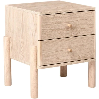 Nightstand with Natural Wood Look. Complete your bedroom with this stylish and practical bedside table. Made from durable particle board with solid wood legs and handles, it features a finish that highlights the warm, natural look of wood grain. Two spacious drawers offer convenient storage for books and everyday essentials, helping keep your space tidy and organised. Details: Product Type: Bedside Table Style: Scandinavian General Color: Brown Shade: Light Brown Material Type: Engineered Wood Main Material: Particle Board Additional Material: Pine Wood Legs material: Wood Drawers: Yes Finish: Paper Veneer Number of Drawers: 2 Shelves: No Dimensions: Depth: 40 cm Width: 40 cm Height: 50 cm Weight: 8 kg Drawer Weight Capacity: 10 kg Top Weight Capacity: 20 kg Offer Includes: 1 x Bedside Table Key Features: Minimalistic, Scandinavian Style, Decorative Yet Functional, Eye-Catching Accent Piece, Wood-like Finish for Natural Look, High-Quality Materials, For Best Care, Protect Against Heat