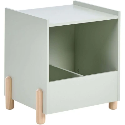 Pastel Nightstand for Kids Room. This charming bedside table is the perfect addition to any kid's room, offering both style and practicality. With a spacious open shelf and a compartment to keep toys or books neatly organised, it combines convenience with a lovely pastel finish. The sturdy MDF construction and pine wood legs provide a natural, durable look that will last for years. Details: Product Type: Bedside Table Style: Scandinavian General Color: Green, Brown Shade: Light Green Material Type: Engineered Wood Main Material: MDF Additional Material: Pine Wood Frame Material: Engineered Wood Legs material: Wood Top Material: Engineered Wood Drawers: No Finish: Painted Leg Caps/ Pads: No Shelves: Yes Dimensions: Depth: 36 cm Width: 40 cm Height: 45 cm Weight: 6 kg Shelf Weight Capacity: 10 kg Top Weight Capacity: 10 kg Offer Includes: 1 x Bedside Table Key Features: Easy Access Storage for Kids, Designed to Complement Any Child's Bedroom, Trendy Design and Colour, Top-Notch Quality
