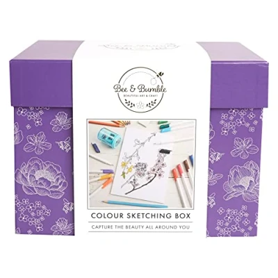 BRAND Bee & Bumble offer high-quality kits including everything needed to create own makes from the comfort of your own home.Perfect gift ideas ideal for all kinds of craft lovers/creative thinkers.Premium craft range has something for everyone CONTENTS This Coloured Sketching Box contains a variety of art supplies including 12 coloured pencils, 12 colour fineliner pens, canister sharpener, eraser, blending stump, and A5 sketch pad GIFT This premium art and craft kit makes the perfect present for your loved ones, and will be loved by any craft enthusiast or hobbyist whether professional or beginners IDEAL Offers an introduction to a particular craft whether you are a beginner or have previous experience of the craft.Crafting skills are not a prerequisite as the kits couldn't be easier to use.Take out the items and follow the instructions MANUFACTURED Bee & Bumble Art & Craft Kits are designed and made in the UK.Everything you need to make a project from start to finish in a handy craft kit!Great value and a lovely way to while away a few hours!