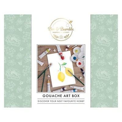 BRAND Bee & Bumble offer high-quality kits including everything needed to create own makes from the comfort of your own home.Perfect gift ideas ideal for all kinds of craft lovers/creative thinkers.Premium craft range has something for everyone CONTENTS This gouache art box includes everything you need to create stunning works including 12 gouache paints - 12ml, 5-piece brush set, petal mixing palette, and A5 watercolour pad GIFT This premium craft kit makes the perfect present for your loved ones, and will be loved by any craft enthusiast or hobbyist. Ideal for birthday and Christmas IDEAL Offers an introduction to a particular craft whether you are a beginner or have previous experience of the craft.Crafting skills are not a prerequisite as the kits couldn't be easier to use.Take out the items and follow the instructions MANUFACTURED Bee & Bumble Art & Craft Kits are designed and made in the UK.Everything you need to make a project from start to finish in a handy kit!Great value and a lovely way to while away a few hours!
