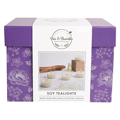 Bee & Bumble Make Your Own Soy Tealights, Makes 5 Candles, 100g Wax, Tealight Wicks, 4ml Vanilla Fragrance Oil, Craft Kit Set, DIY, Art And Crafts, Unique Gift