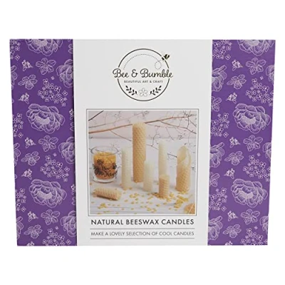 BRAND Bee & Bumble offer high-quality kits including everything needed to create own makes from the comfort of your own home.Perfect gift ideas ideal for all kinds of craft lovers/creative thinkers.Premium craft range has something for everyone CONTENTS This beeswax candle making kit includes natural beeswax sheets x 5 (natural and ivory), beeswax pellets, candle glass x 2, along with candle wick, sustainer wick x 2, self-adhesive embellishments and a handy set of instructions GIFT This premium craft kit makes the perfect present for your loved ones, and will be loved by any craft enthusiast or hobbyist.Bees candles are perfect for birthday and Christmas IDEAL Offers an introduction to a particular craft whether you are a beginner or have previous experience of the craft.Crafting skills are not a prerequisite as the kits couldn't be easier to use.Take out the items and follow the instructions MANUFACTURED Bee & Bumble Art & Craft Kits are designed and made in the UK.Everything you need to make a project from start to finish in a handy kit!Great value and a lovely way to while away a few hours!