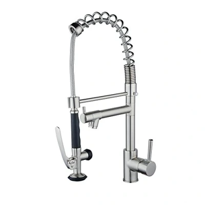 【Heavy Duty】-- The body of this kitchen tap is made of heavy duty solid brass, with high sealing ceramic cartridge , water-saving aerator, ensuring quality and longevity. 【Commercial Style】-- The pull down kitchen tap is both flexible and functional, with a heavy-duty open coil spring spout for an industrial look; HIGH-ARC SPOUT with stainless steel hose offers increased sprayer mobility with ample room for large pots and tall pitchers. 【Dual Function】-- Our commercial kitchen tap with 2-way water flow mode--Pre-Rinse Sprayer offers powerful spray to flush away food residue; Pot Filler provides aerated stream to filling large pots and pans; The fantastic thing is that sprayer and pot filler can work at the same time which will be a great help for us to washing vegetables, fruits or do other house work in two sinks. 【Easy to Clean】 -- Superior corrosion & rust-resistant brushed nickel finish keeps dirty away from surface,cleaning faucet by cloth is enough in daily use. 【Easy to Install】 -- Pull down and water line hoses included, finish DIY like a breeze, saving much installation time under the sink and plumber fee. Give your kitchen a quick modern makeover with spring single handle pull down sprayer kitchen tap today!, Manufacturer: Beelee