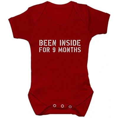 Been Inside for 9 Months Baby Bodysuit/Romper/Vest/T Shirt 6 12 Red