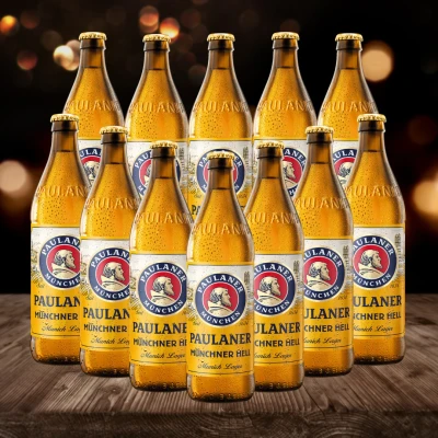 Paulaner Munchner Hell Premium German Lager 330ml Bottles (Multipack) - With its founding by the Paulaner monks in the 17th century, this brewery made a notable debut with their first beer, the strong bock named Salvator. Its excellence and popularity led to other local breweries appealing to the council for restrictions on its sale to protect their own businesses. Abiding by the German purity law, the brewery has since created a range of exceptionally crafted beers. Their signature lager, clear and sparkling with a soft hint of hops and a touch of sweetness from mild, elegant malts, is crowned by a pure white head.