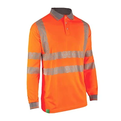 Beeswift Envirowear Orange Hi Vis Long Sleeve Polo Unisex Reflective Sustainable Circular Process Safety PPE Workwear Small