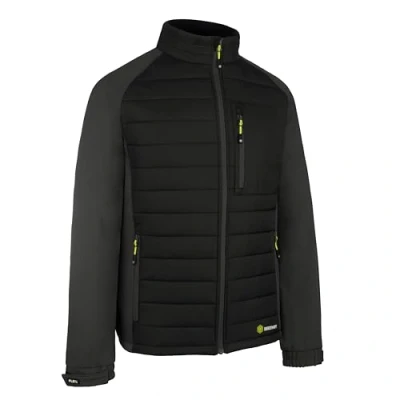 The Flex stretchable fabric range encapsulates innovation, functionality, and style. Workwear that stretches the limits. Ergonomically designed, providing the wearer with an unparalleled range of movement and comfort whilst working. The Flex Jacket is a lightweight padded jacket with Flex stretchable side panels for improved flexibility, made from 100% Nylon Ripstop with PU coating with a shell weight of 75gsm. The padding is 100% Polyester at 220gsm. The lining is quilted taffeta and is 100% polyester at 60gsm. Our outerwear is designed to be comfortable, insulated and fully lined/windproof for increased warmth. The hard-wearing fabric added to the side panels is for great durability and garment life. The side panels have been fleece bonded for added comfort. Underarm zips added with bird eye mesh liner for extra ventilation. The quilted jacket has stand-up collars and has a metal front full zip with metal teeth. The range also features Hi-Vis green-coloured accents and tagging for great styling and visibility. There is also one accent zip down the left breast. (Comes with extra black soft zip tags). A few great features of the padded jacket are it has two zip-hip pockets with soft-touch zip pullers. It also has one internal access pocket with Velcro closure and an elasticated cuff with hook and loop fasteners. Internal side hip adjusters.