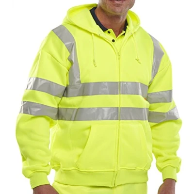 Our high visibility zipped hoodie is designed to ensure safety in low-light and hazardous work environments. Crafted with retro-reflective tape and a two-band and brace pattern, this hoodie enhances visibility from all angles, providing peace of mind for those working on-site.