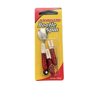 Beetle spin is simple and easy to use for the novice or avid angler The bright, matching safety-pin spinner is easy to remove when you want a plain jig for deepwater presentations Featured translucent polycarbonate jig head and steel shot adds weight for better jigging and louder Available in red sparkle/white color with nickel blade; measures 1-1/2-inch length International products have separate terms, are sold from abroad and may differ from local products, including fit, age ratings, and language of product, labeling or instructions.