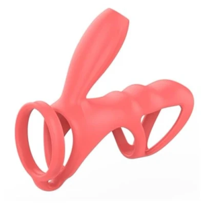silicone penis sleeve with sack ring and clitoris vibrator Surrounds the shaft with vibrations both can feel Features ball loop for delicious constriction Perfect couples sex toy, great stimulation and fun Created from quality silicone