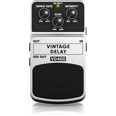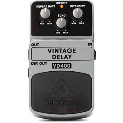 AUTHENTIC VINTAGE ECHO: Experience the warm, decaying repeats and slightly darkened tone of a true Bucket Brigade Device (BBD) analog delay circuit, faithfully capturing the character of iconic 1970s and 80s delay pedals. FULL CONTROL OVER YOUR SOUND: Shape your echoes with dedicated Repeat Rate, Intensity, and Echo (mix) controls. Dial in everything from subtle slap-back echoes for rockabilly to long, atmospheric repeats for solos. THE SOUND OF CLASSIC RECORDS: This pedal recreates the lush, modulated delay sounds that defined classic rock, blues, and post-punk. It adds warmth and space to your tone, making it perfect for rhythm and lead playing. PEDALBOARD FRIENDLY: The compact and sturdy chassis fits easily on any board. A bright amber LED indicates when the effect is active, and the robust footswitch is built for countless engagements during practice and performance. INSPIRED BY LEGENDARY TONES: The VD400 delivers the coveted analog delay sound at an incredible value. It's the perfect entry point into the world of vintage modulation effects for guitarists and bass players alike.
