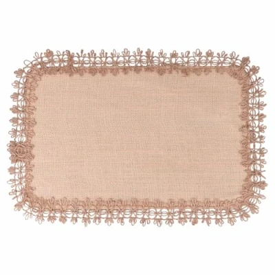 Beige Rectangular Placemat 45 x 30 cm in Jute, Embroidered Border