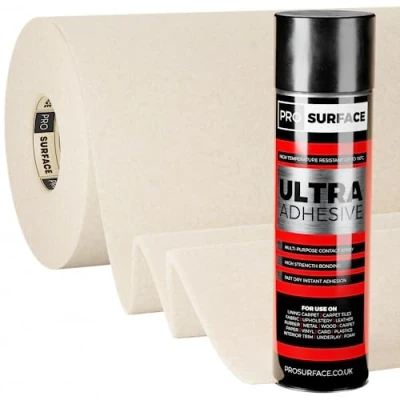 Beige 4-Way Ultra Stretch Van Lining Carpet Trim 100% Polypropylene. 3mm Thick Smooth Velour Finish This Kit Includes 10 Metre x 2 Metre Lining Carpet & 10 Cans of High Temperature Glue 4-way Ultra stretch makes it extremely easy to work with giving you a perfect finish to every surface including wheel arches, windows and doors. Highly flexible 4-way stretch roof and wall lining carpet can be used in vans, minibuses, motorhomes, campervans, boats and more., Manufacturer: PRO SURFACE
