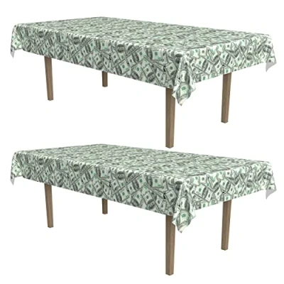 INCLUDES: 2 plastic rectangle shaped Money Print Tablecovers in the package SIZE: Each Big Bucks Money Tablecover measures 54 inches long by 108 inches wide MATERIALS: Made of thin plastic with an all-over print of money - Fits standard rectangle shaped tables CASINO PARTY DECORATIONS: The Casino Table Covers are disposable plastic - Easy to wipe clean during the party and easy to dispose of after the party CELEBRATE LIFE WITH US: Since 1900 The Beistle Company’s mission has remained the same: to help people around the world celebrate life’s events by creating fun, high quality products using the finest materials