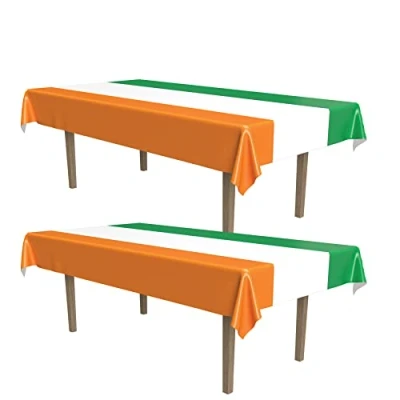Beistle 2 Piece Plastic Retangular Irish Tablecovers for Happy St. Patrick's Day Tablecloth Coverings, Saint Patty's Decorations, 54" x 108", Green/White/Orange