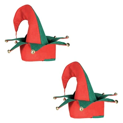 Beistle S20736AZ2 Felt Elf Hat w/Bells 2 Piece, Red/Green