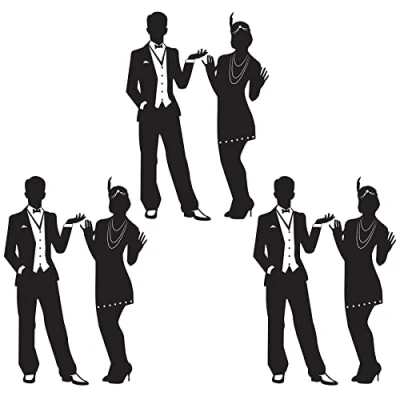 PROUDLY MADE IN THE USA INCLUDES: 6 Great 20’s Theme Cut Outs in the package - 3 male and 3 female SIZE: Male cutouts measure 37 inches tall; Female cutouts measure 36.75 inches tall MATERIALS: Printed on both sides of durable cardstock paper; Black with white highlights CELEBRATE LIFE WITH US: Since 1900 The Beistle Company’s mission has remained the same: to help people around the world celebrate life’s events by creating fun, high quality products using the finest materials